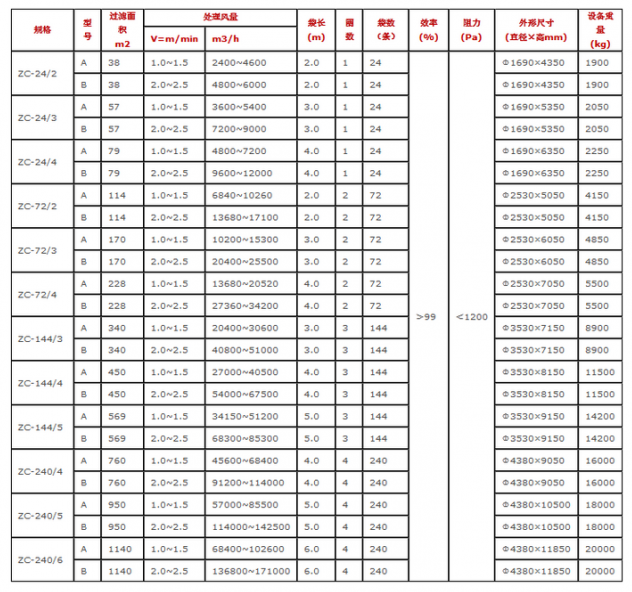 ZC-Ⅱ型機(jī)械回轉(zhuǎn)反吹扁布袋除塵器的型號(hào)參數(shù):