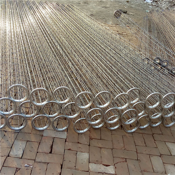 是由直徑4mm彈簧鋼絲在車床上繞成,使用在長度3000mm左右的除塵布袋上,上端掛在除塵布袋室的頂部,下端掛在花板鐵圈中的鉤子上.這種骨架較輕,具有 的伸縮性.彈簧骨架(除塵框架/除塵濾籠)是除塵器布袋的肋骨,骨架的質(zhì)量直接影響布袋的工作狀態(tài)與使用壽命。