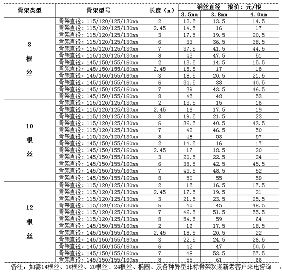 噴塑骨架價格表