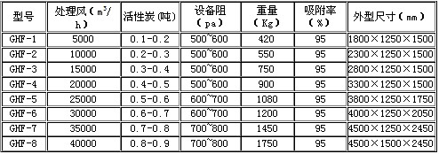 四、GHF系列|活性炭吸附過濾器設備型號及參數:
