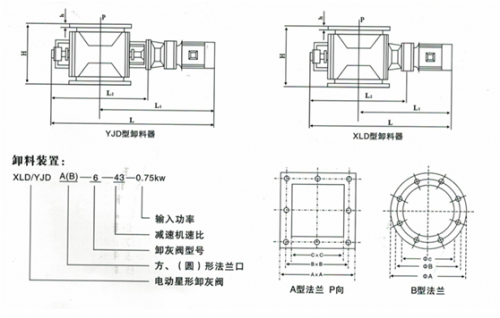 2、星型卸料器的上、下法蘭口基本是方形或圓形,也可以由用戶選定。